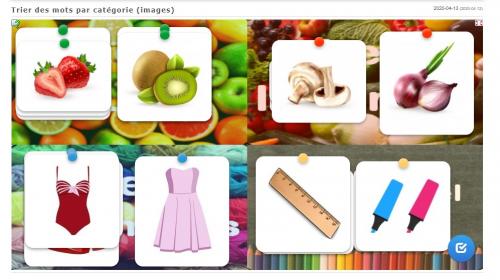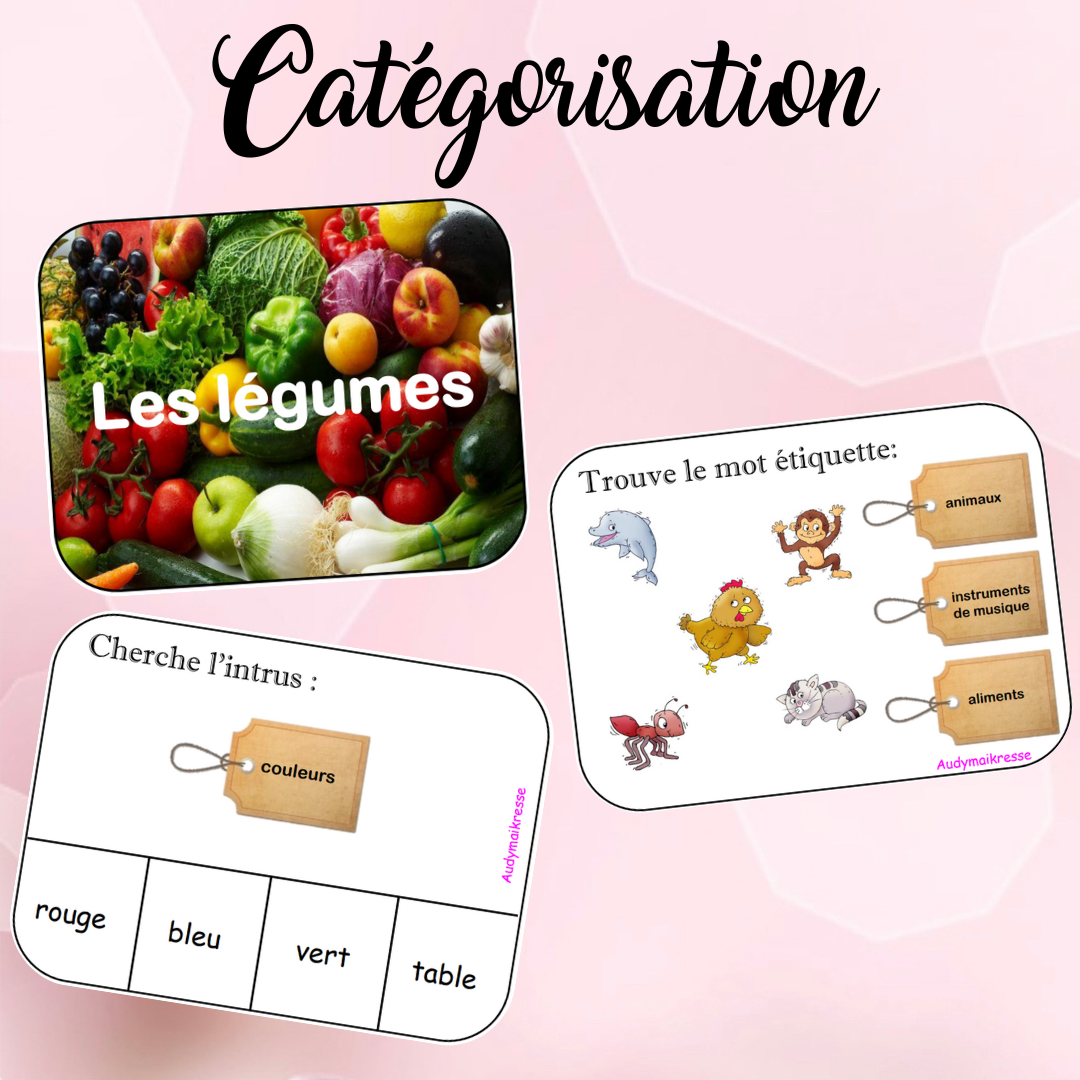 Pour travailler sur le tri de mots et les placer dans la bonne catégorie, j’utilisais un atelier de manipulation tout simple avec des images à catégoriser.